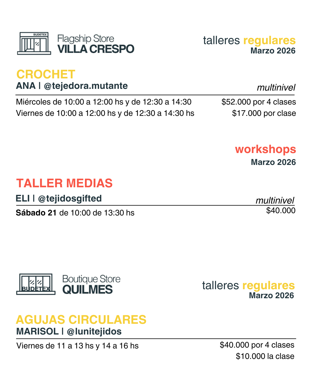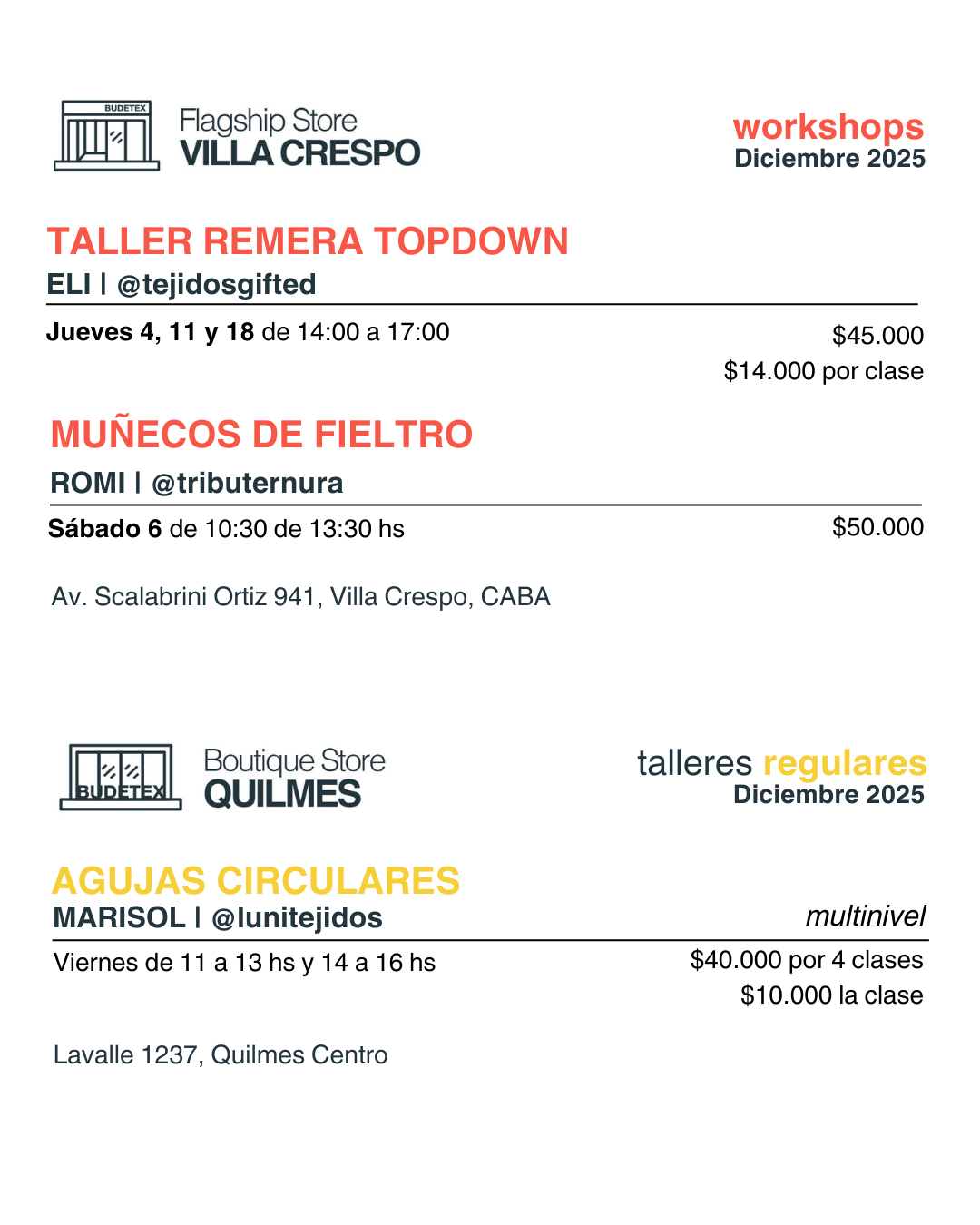Damos talleres presenciales en todos nuestros locales. Podés anotarte a cursos arancelados regulares así como también talleres especiales del mes. Y tambien te invitamos a sumarte a nuestras actividades gratuitas.